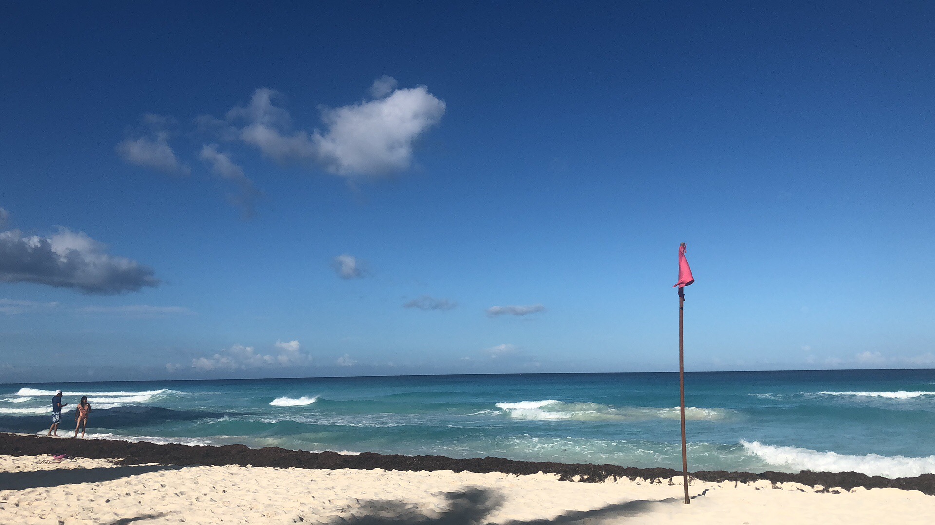碧蓝色的加勒比海就在我眼前。台风的季节里,海岸线就像被巨人扛在了肩上,他喘着粗气,迈着大步向我袭来,这是一个令人惊恐的画面。海水的颜色和暗沉的天色混在了一起,它涨起来,不知道到什么地方为止,但确信的是,它朝你涌过来,像一个热情的女人,一个满腹惆怅的女人,尽其所能地朝你涌来,释放她的情感。